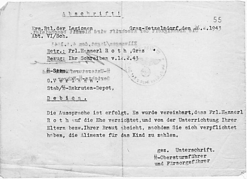 In Pyatilipy, gelegen in het noordwesten van het Russische district Novgorod Oblast, raakt hij zwaar gewond aan zijn linker onderarm. Hij wordt naar Oostenrijk verplaatst om er in veldlazaret 126 te herstellen. Het is dan ergens eind juli 1942 en hij is dan nog met mijn tante verloofd. Maar dan piest Geert naast de pot: in het afschrift van een vonnis van 26 februari 1943 aan G. Verlaan, Debica/Krakau, gericht, wordt vermeld dat mejuffrouw Hannerl R. uit Langenwall/Graz afziet van een huwelijk met Verlaan alsmede van een geboortemelding aan Geerts familie en aanstaande bruid Bep van Hooijdonk. Verlaan heeft zich er immers toe verplicht in de alimentatie van het kindje te voorzien. Uit het contact van Geert Verlaan met Hannerl R. in de herfst van 1942 wordt op 1 mei 1943 het Oostenrijkse buitenechtelijke dochtertje Gerlinde geboren. Toch komt iets van het Oostenrijkse slipperte ter oren van mijn tante, want ze verbreekt de verloving.